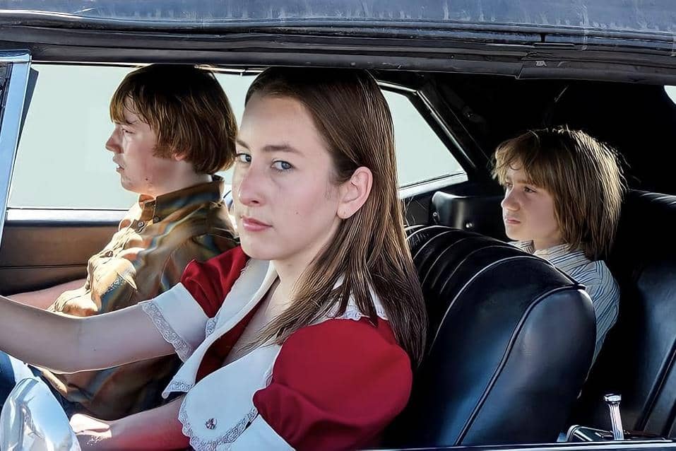 Licorice Pizza bukan tipe film komedi yang langsung bikin ngakak dalam hitungan detik. Justru kekuatannya ada pada momen-momen kecil yang terasa sangat alami. Ceritanya mengikuti Gary (Cooper Hoffman) dan Alana (Alana Haim), dua orang dengan perbedaan usia yang mencoba memahami hubungan sambil menjalani berbagai petualangan aneh dan rencana bisnis yang sering berakhir kacau.